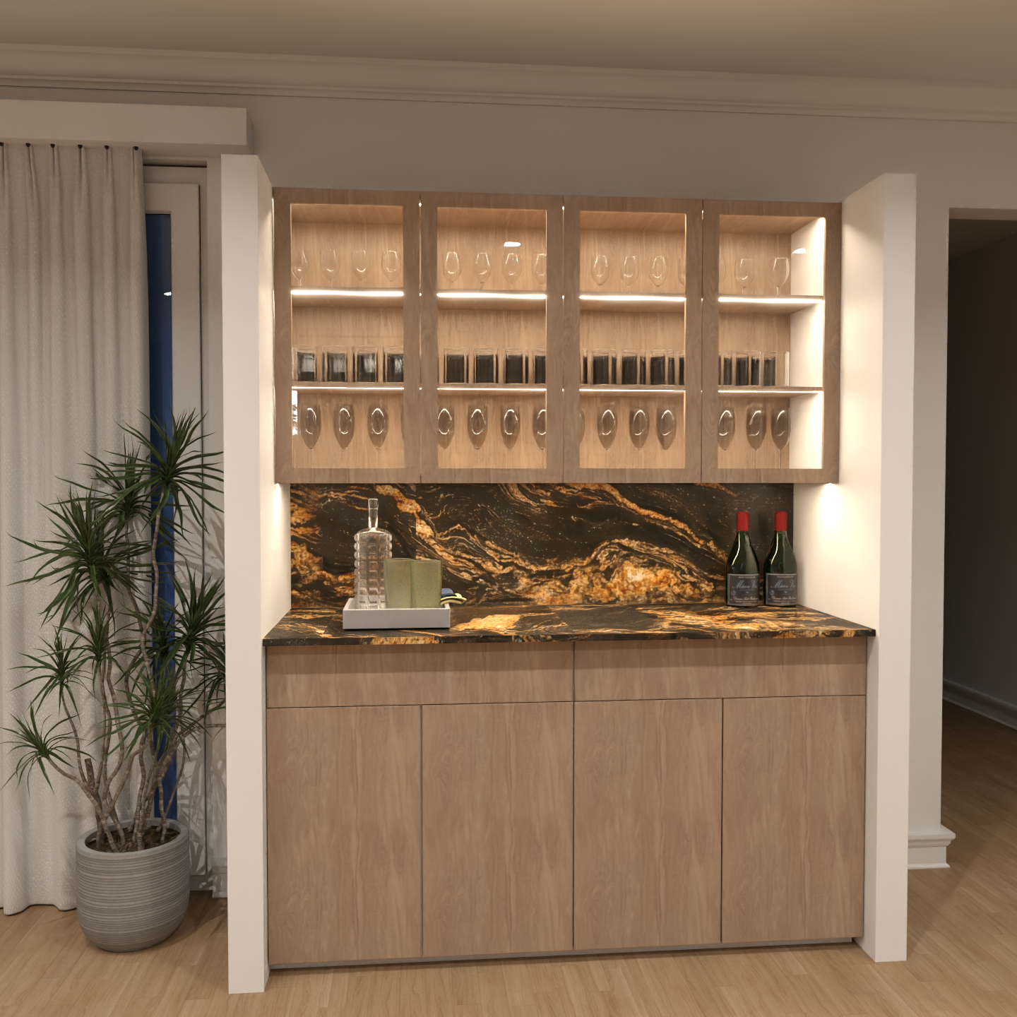 See this real client transformation: a classic 90s/early 2000s honey oak kitchen completely reimagined into an elegant, contemporary open-concept masterpiece with light wood tones, dramatic black marble, and premium finishes.